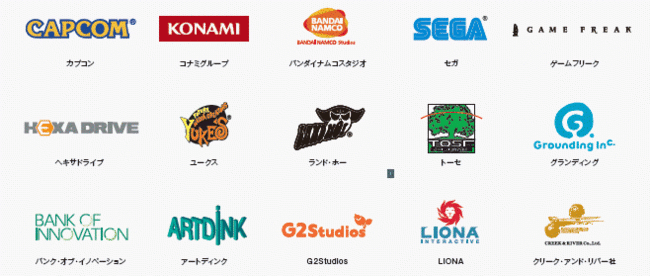 カプコン/コナミグループ/バンダイナムコスタジオ/セガグループ/ゲームフリーク/ヘキサドライブ/ユークス/ランド・ホー/トーセ/グランディング/バンク・オブ・イノベーション/アートディンク/G2 Studios /LIONA /クリーク・アンド・リバー社